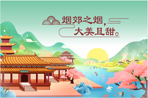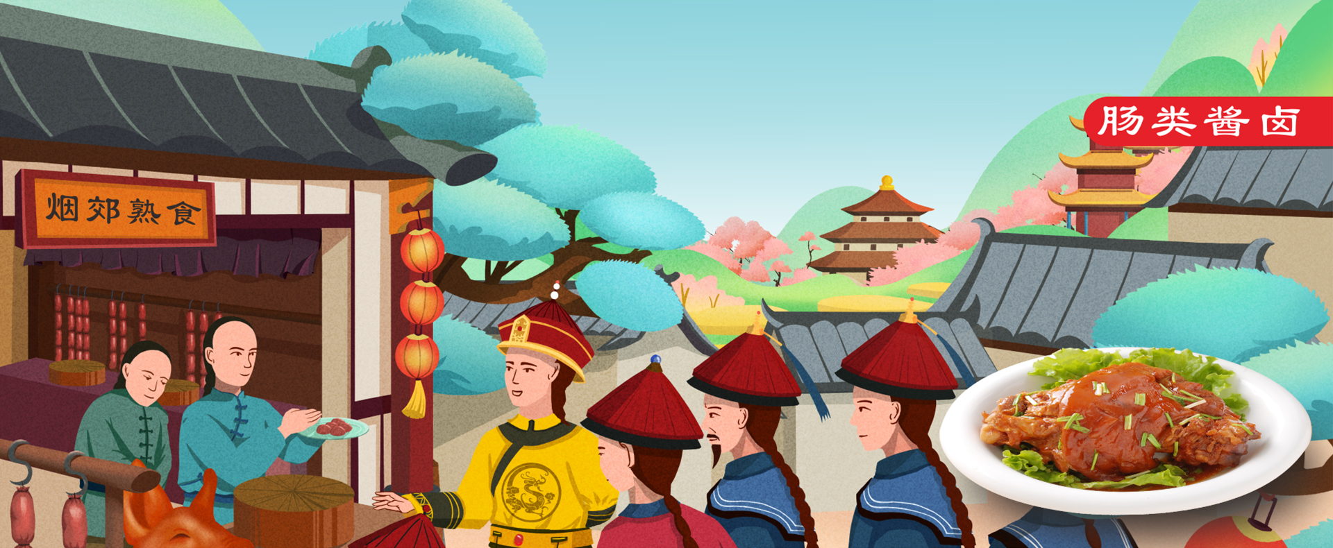 康熙二十一年春,皇帝二次東巡,途徑燕郊,飄起絲雨,恰逢午時(shí)村中造炊,炊煙裊然,煙雨相融,空濛如仙境,皇帝駐足眺望,嘆道:「煙雨空濛萬(wàn)家炊,郊野有家京不回!好一派祥和煙郊!」遂下令在此建築行宮?!笩熃肌怪畡e稱(chēng)隨之流傳。皇帝後微服私訪(fǎng)至煙郊民間,食一熏雞甚妙,問(wèn)詢(xún)店家才知乃使「糖熏」工藝。即打趣道:「煙郊之煙,大美且甜哉。」煙郊糖熏雞自此聞名。後經(jīng)傳承,愈···